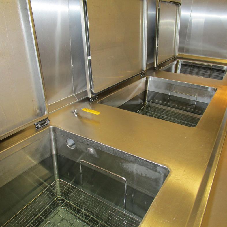 Verwandte ProdukteMehrstationen-Geräte vervollständigen den gesamten Reinigungsprozess vom Waschen über das Spülen bis zum Trocknen. Die Größe sowie die Menge der Wannen selbst ist beliebig, an den Reinigungsprozess selbst oder an die zu reinigenden Gegenstände angepasst. Sie sind sowohl für die Industrie als auch für pharmazeutische Betriebe bestimmt, in denen auch GMP-Standards eingehalten werden.